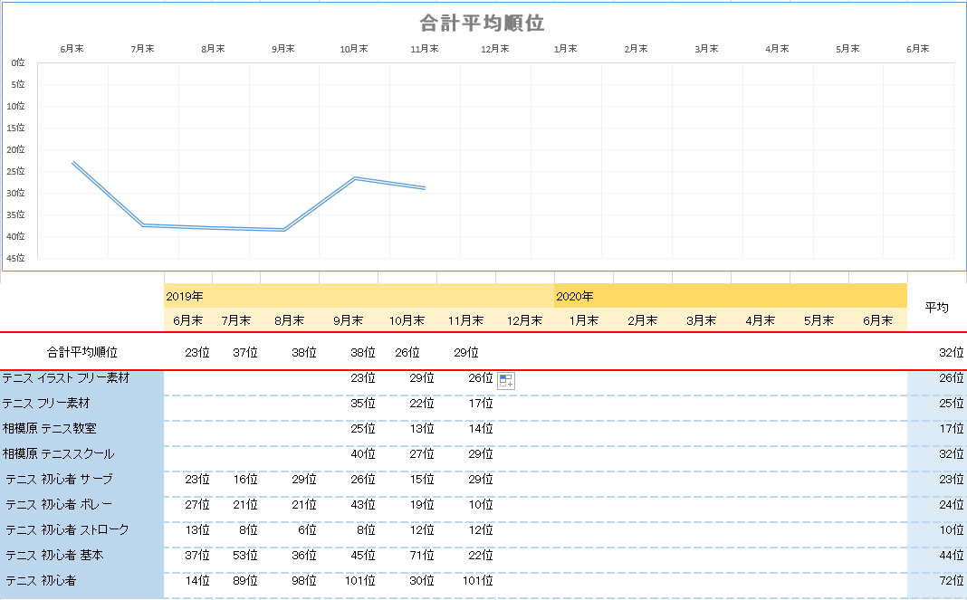 やぎテニス11月の順位結果